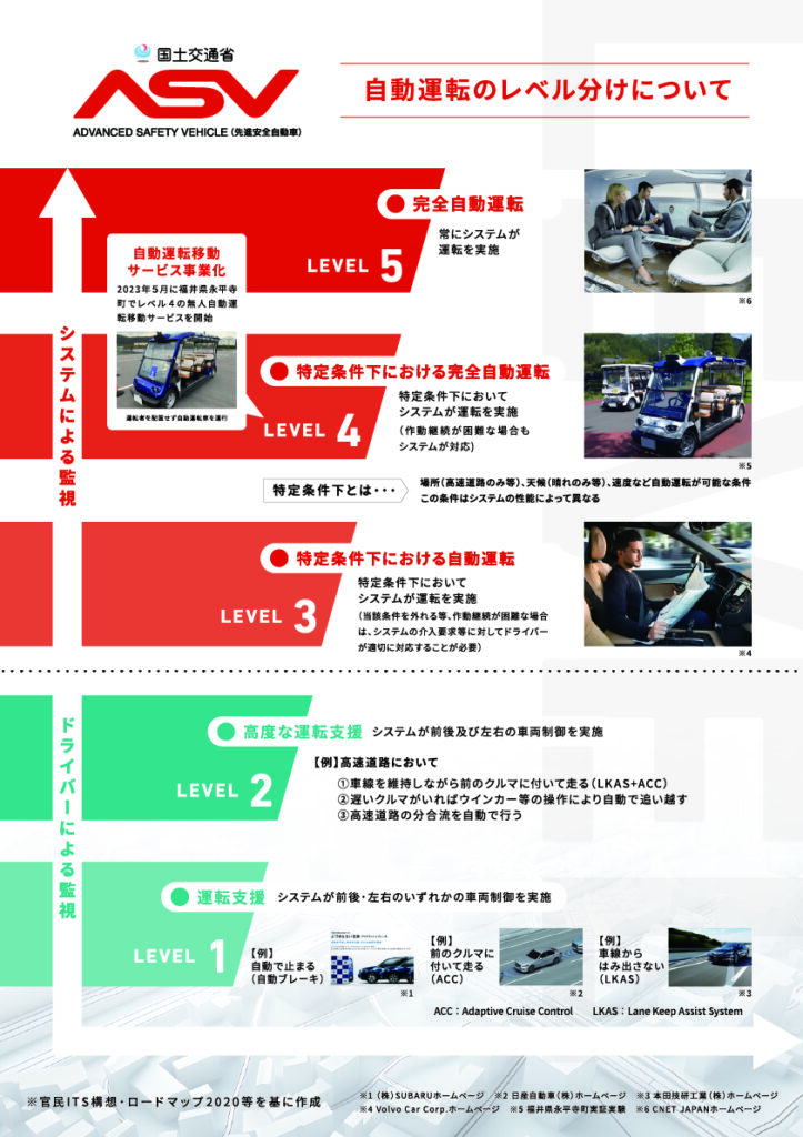レベル1からレベル5までの定義をわかりやすく整理するとともに、レベル1-2とレベル3-5の間に大きな違いがあることを示しています。