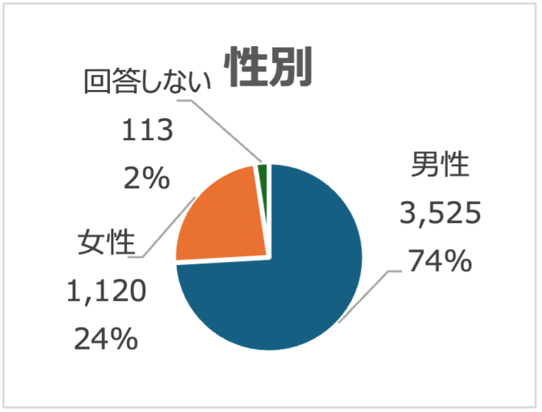 アンケート結果について、全体の3/4を占めた男性の回答のみを抽出して分析しました。