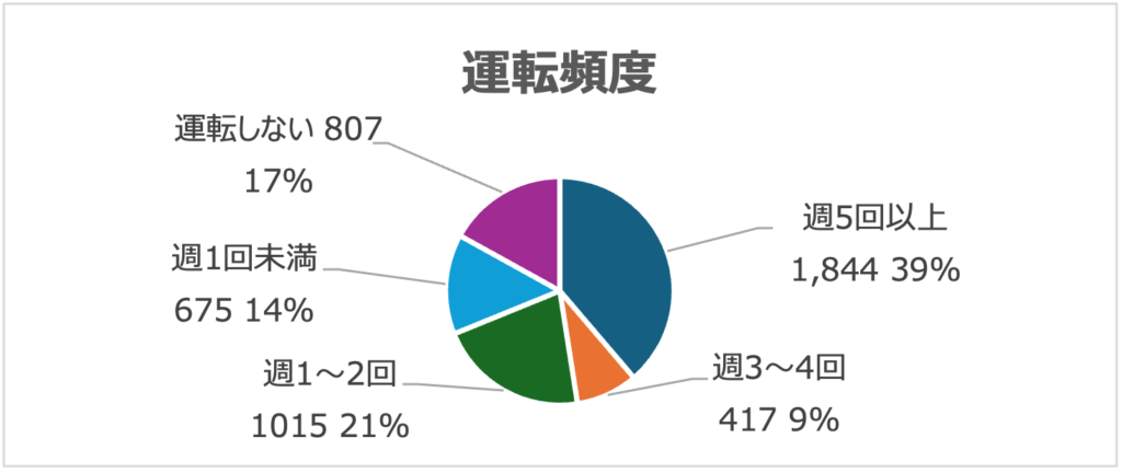 回答数は、全部で4758人。そのうち3/4が男性でした。クルマの保有率は77%、運転頻度は週1回以上運転する人が68%で、これは全国平均とほぼ同じレベルです。一方、来場者のうち会場のある東京近隣からの人が多いことを考えると、東京の自家用車保有率50%、週1回以上運転する人37%(東京都調査*)に比べ高く、やはりクルマ好きのヘビーユーザーたちが多くアンケートに回答してくれたようです。皆さま、ありがとうございました。